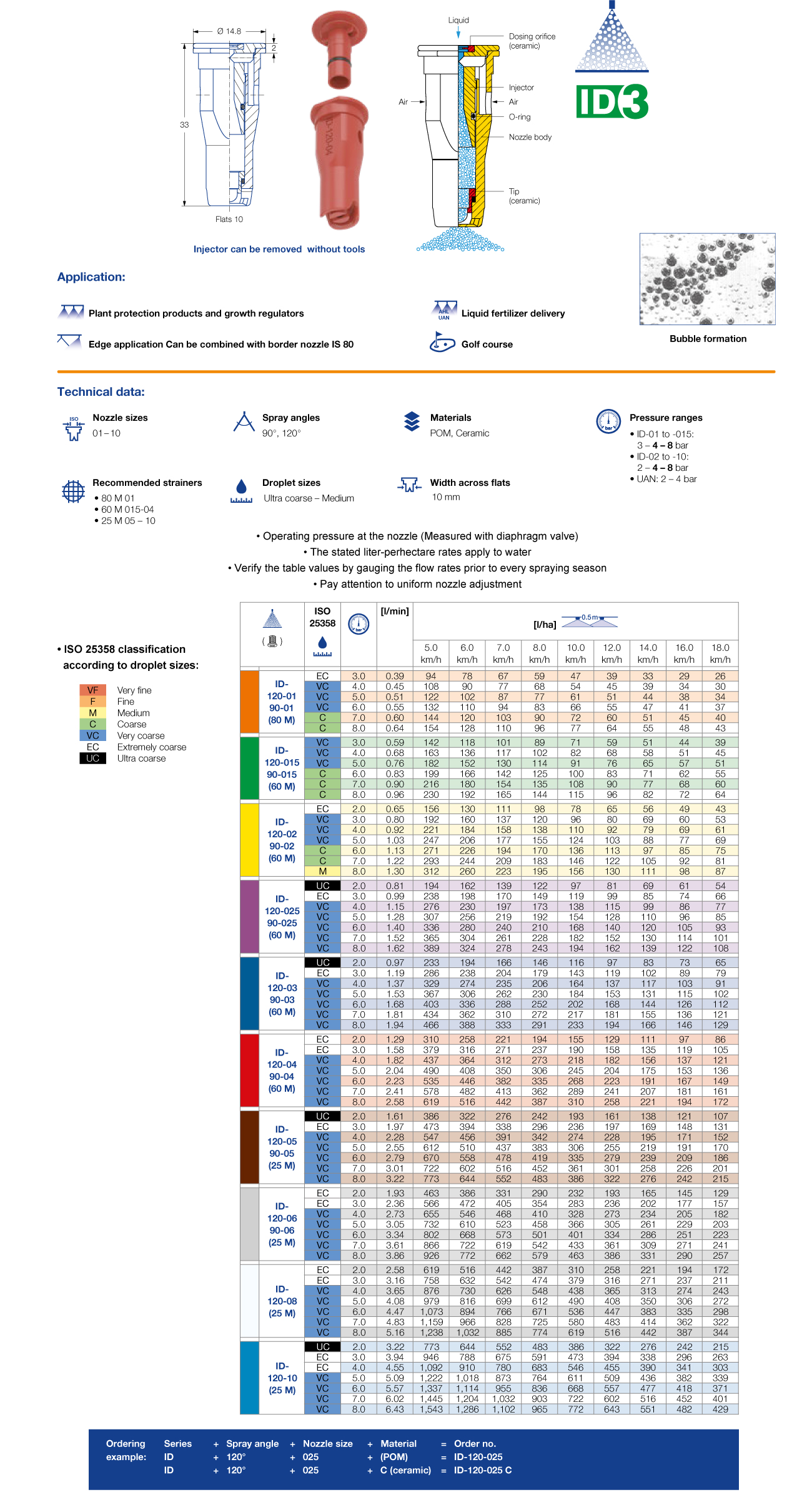 • Increased workrate due to flexible use over a wide pressure range – adaptation by changing the sprayer speed and l/ha rate without nozzle changes