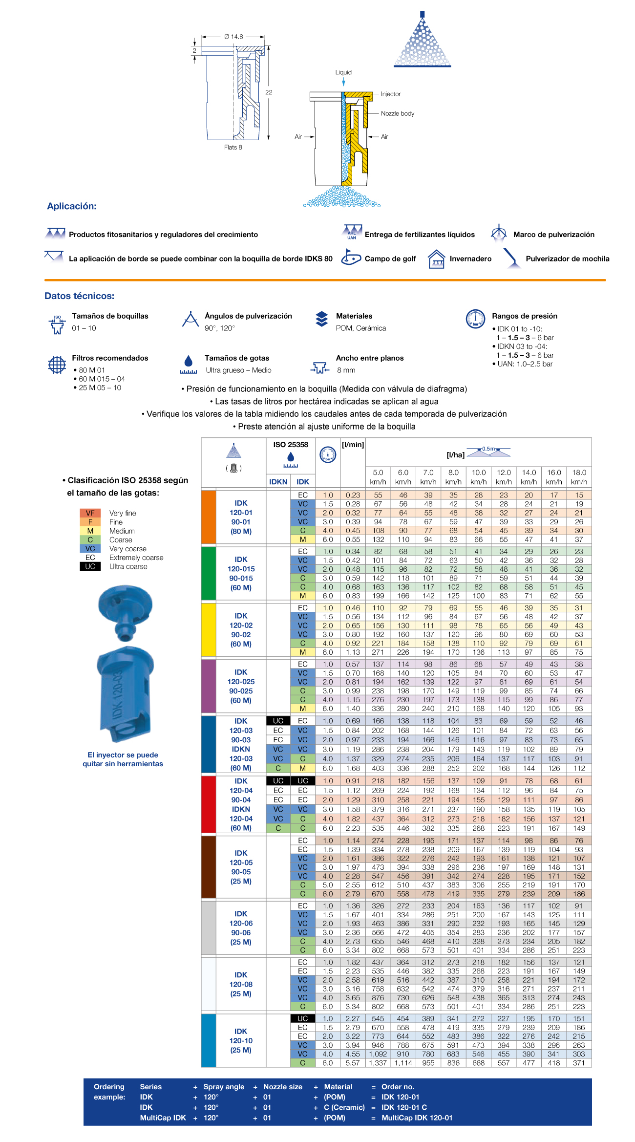 • Reducción de deriva del 95% para: IDK 90-015 C y – 02 C con espaciado entre boquillas de 25 cm