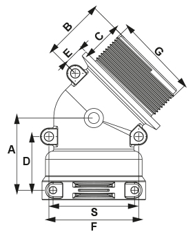 RACOR 45° CON ROSCA MACHO Y CONEXIÓN DE HORQUILLA HEMBRA