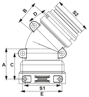 | CÓDIGO | A (mm) | B (mm) | C (mm) | D (mm) | E (mm) | S1 | Horquilla | S2 | O-Ring – EPDM | O-Ring – VITON® |